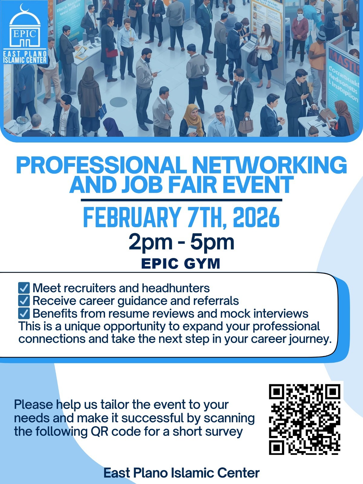 announcement Professional networking & job fair event announcement Winter Umrah Package announcement Cover 2 Cover announcement 40 Hadith announcement Tafseer Surat Sajda announcement Community Service is part of our Faith